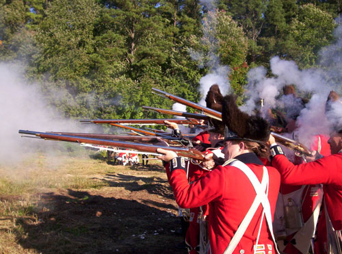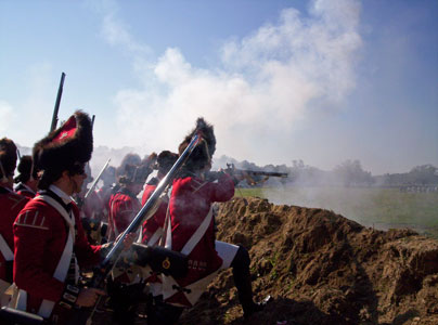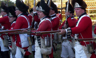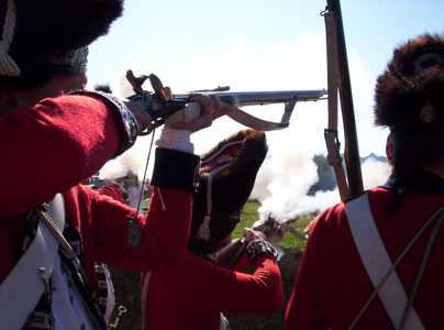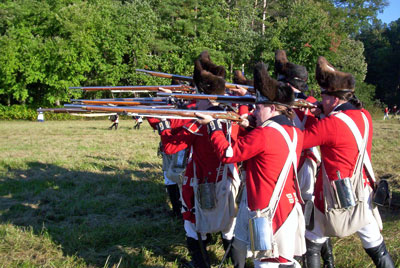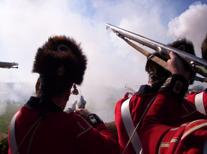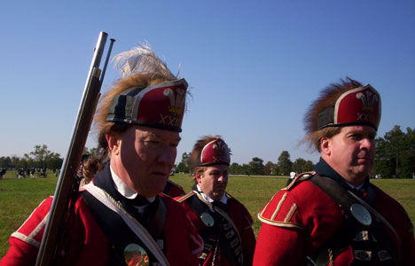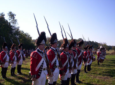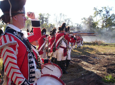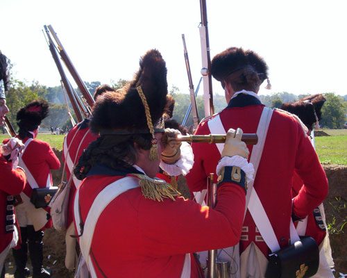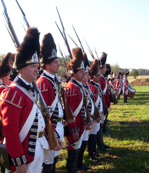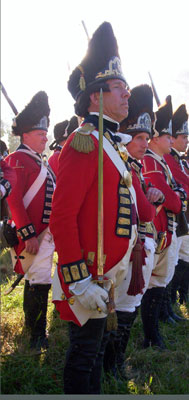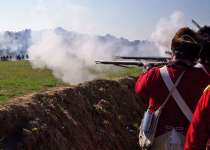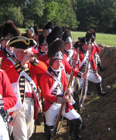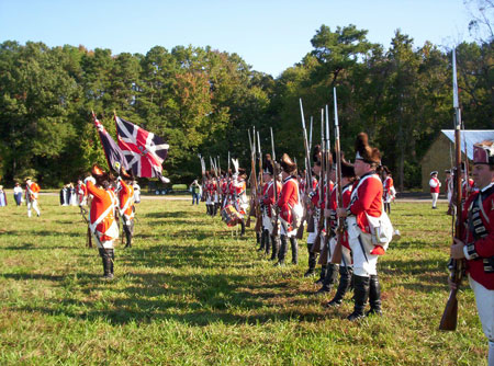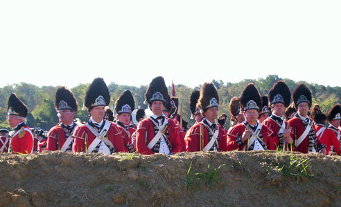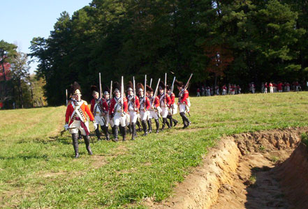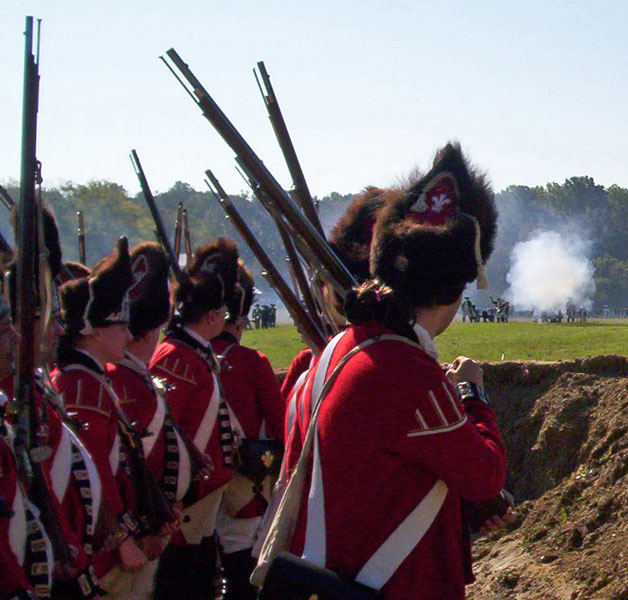 | Grenadiers at attention | Attacking the Village at Yorktown Victory Center | ||||